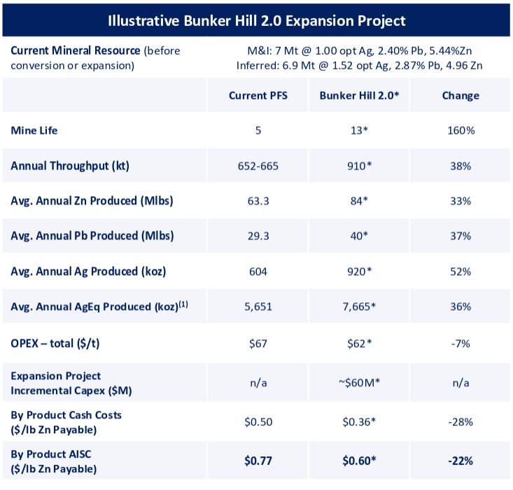 Bunker 2.0: an expansion to 2,500 tpd milling capacity, and a 15 year mine life, through a U.S. $60m capital investment to expand the existing mine.